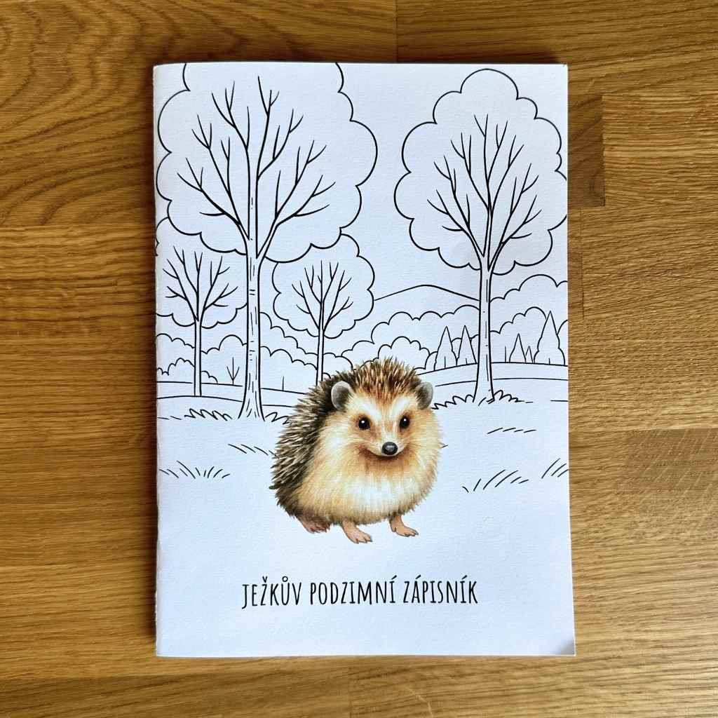 Sešit má 21 stran, je černobílý a plný rozmanitých aktivit: od vybarvování, přes různé úkoly, které děti zavedou ven sbírat přírodniny, až po jednoduché pokusy (děti si společně s ježkem vyzkouší udělat třeba opravdovou podzimní mlhu).