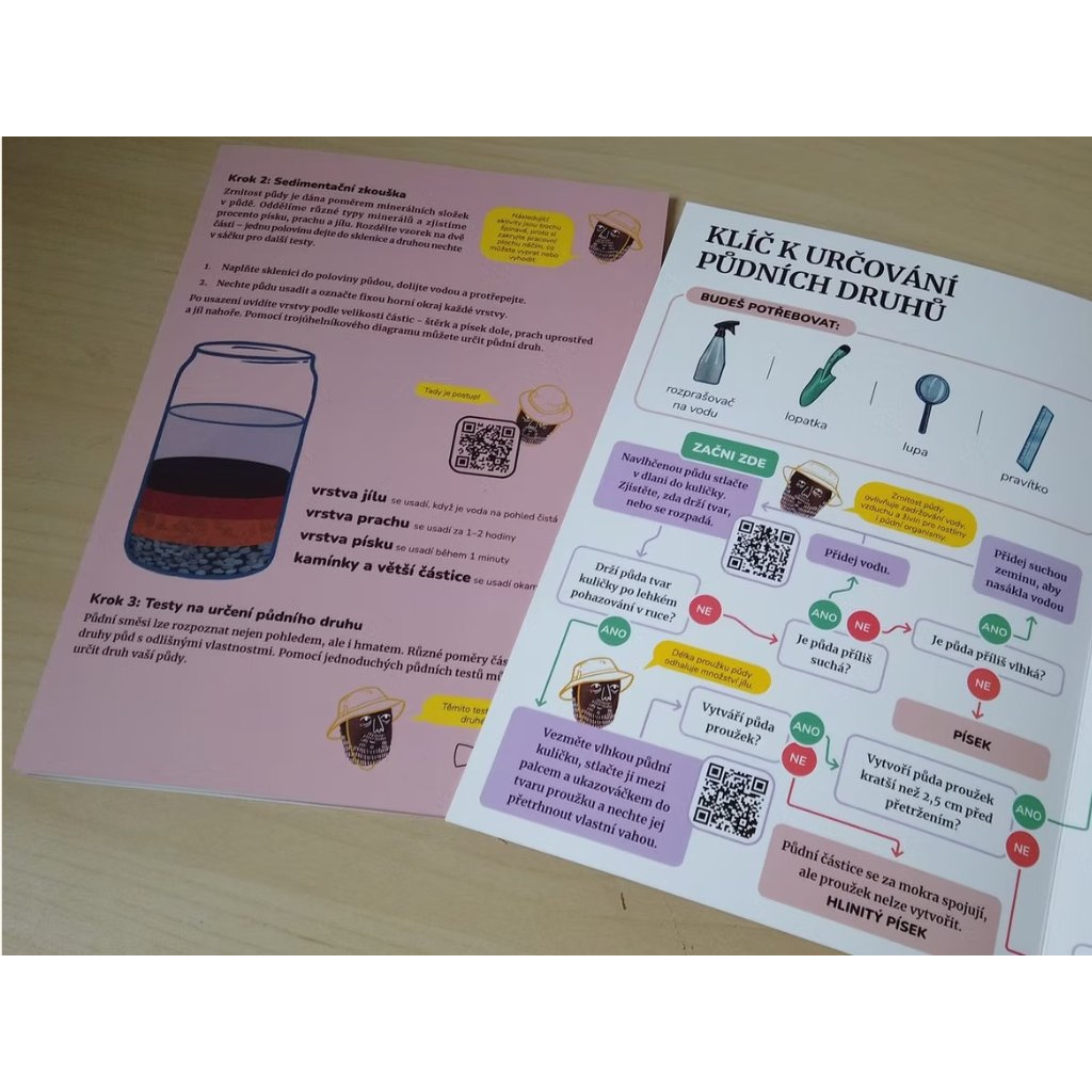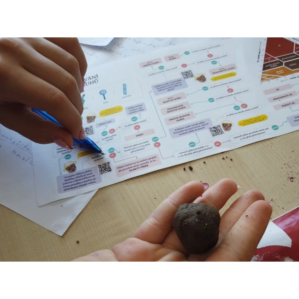 Díky přehledně zpracovanému rozhodovacímu stromu si žáci krok za krokem vyzkouší, určování půdního druhu podle zrnitosti: od písčitých půd přes hlinité až po ty jílovité. Celý proces je logicky uspořádaný, takže podporuje rozvoj dovedností v oblasti pozorování, třídění i samostatné práce s informacemi.