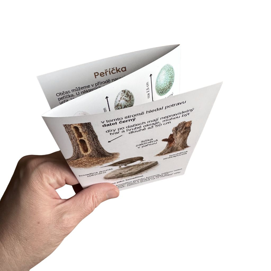 Leporelo má 6 stran, je tištěné na tvrdý papír s gramáží 200g/m a je povrchově laminováno, takže je odolnější proti vlhkosti. Velikost složeného leporela je A6 (15x10 cm), takže se krásně se vejde do kapsy nebo pytlíčku ke kartám Naši ptáci. Leporelo lze koupit samostatně, ale jako doplněk ke kartám je to opravdu pecka.