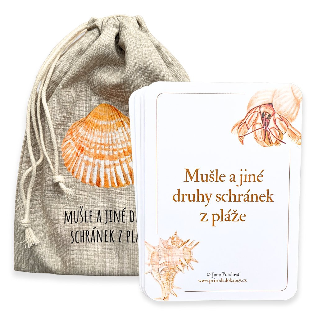 Objevte s dětmi fascinující svět mořských živočichů, jejichž schránky můžete najít na pláži! Tato sada ručně ilustrovaných karet pomůže dětem rozpoznat různé druhy mušlí, které moře vyplavilo na břeh nebo živočichy, kteří zůstali přilepené na skále při odlivu. Na každé kartě najdete detailní ruční ilustraci a poutavé informace, které nadchnou malé i velké badatele.