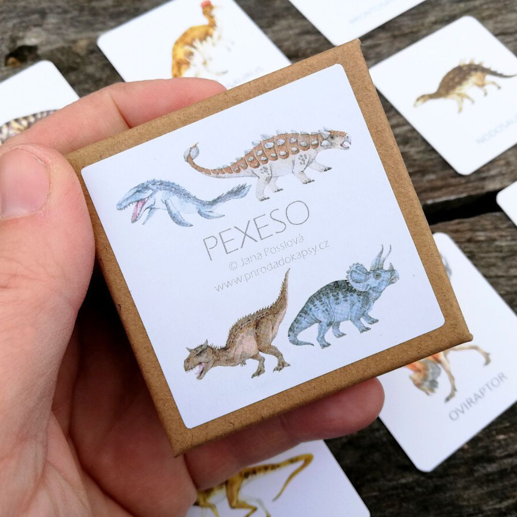 Pexeso s nádhernými ručními kresbami 16 různých druhů dinosaurů.
