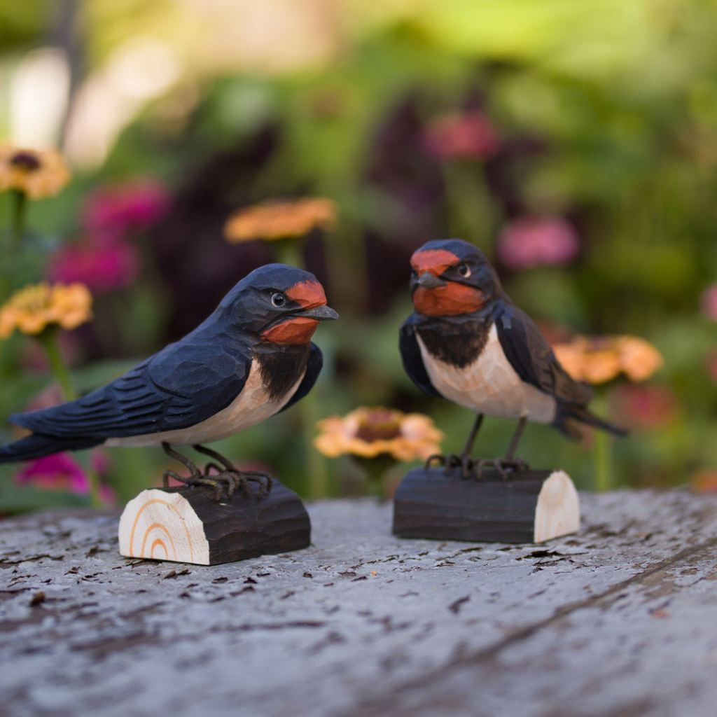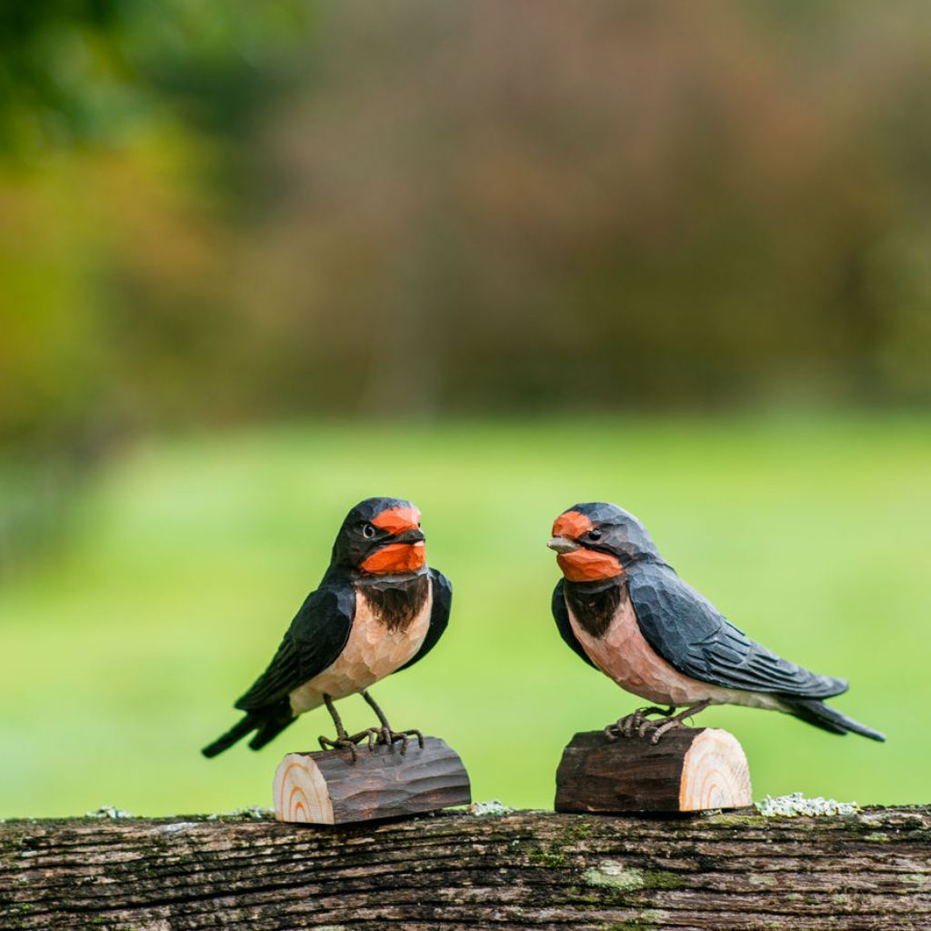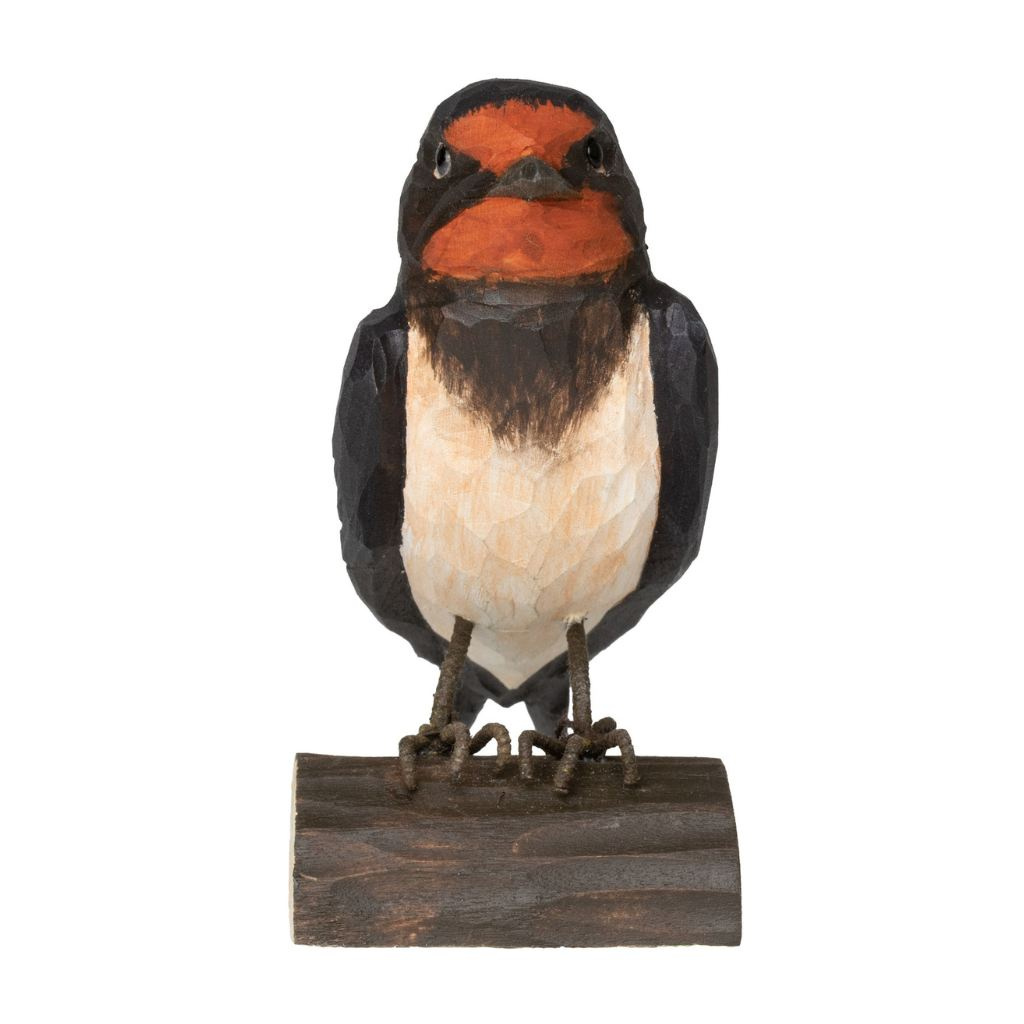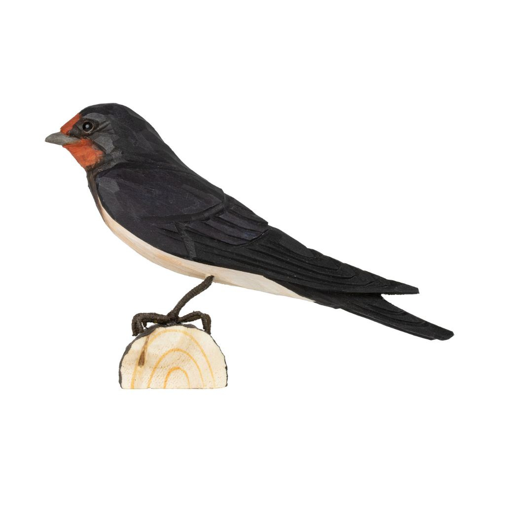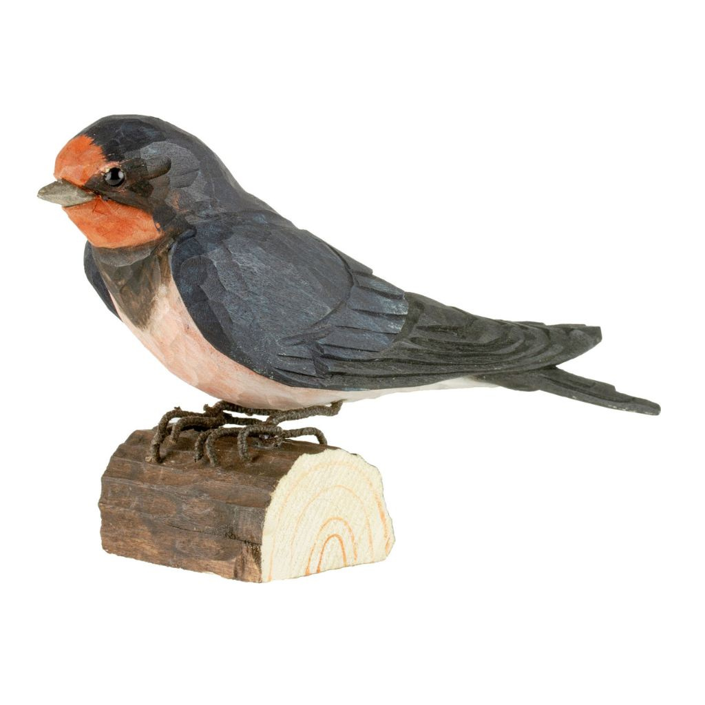 Vlaštovka obecná je pro mnohé symbolem návratu jara, protože se k nám vrací mezi prvními tažnými ptáky a její přílet tradičně ohlašuje konec zimy. Dřevěná figurka vlaštovky obecné zachycuje typické tmavé zbarvení svrchní části těla, červené hrdlo i štíhlou siluetu.
